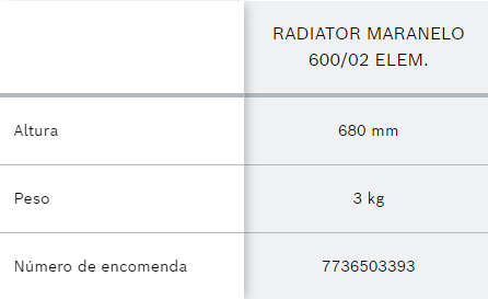 CLIMATIZAÇÃO :: Radiadores :: Radiadores Térmicos :: BOSCH RADIADORES MARANELLO 600/02 ELEMENTOS