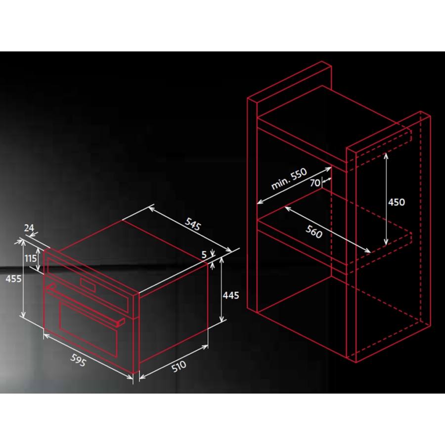 • Funções: Defrosting;Fast preheat;Double Grill;Top heating with fan;Turbo heating;Steam with grill and fan;Light;Steam;Steam and turbo heating