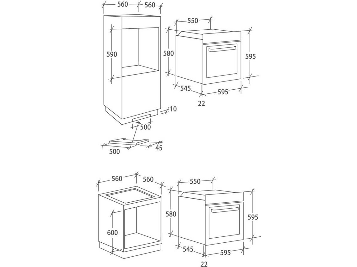 • Dimensões necessárias para o encastre AxLxP: 59 x 56 x 56 cm