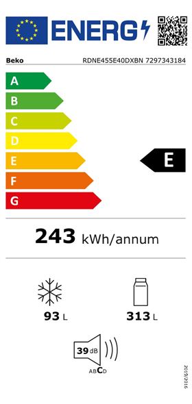 Modelo: RDNE455E40DXBN Capacidade: 406 L Classe energética: E Peso (Kg): 75