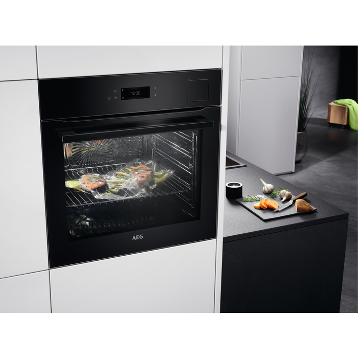 Funções de cozedura do forno: Gratinar, Aquecimento inferior, Assar pão, Assar/cozedura convencional, Descongelar, Função iogurte, Levedar massa, Desidratar, Alimentos congelados, Vapor total, Grelhador, Humidade elevada, Humidade baixa, Humidade média, Manter quente, Cozedura ventilada com humidade, Pizza, Aquecer pratos, Conservar, Cozedura lenta, Sous vide, Vapor regenerar, Steamify, Ventilado, Grelhador turbo