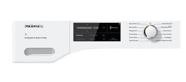 Máquina de secar roupa com bomba de calor T1: com SteamFinish, DryCare 40 e SilenceDrum para uma secagem delicada.
