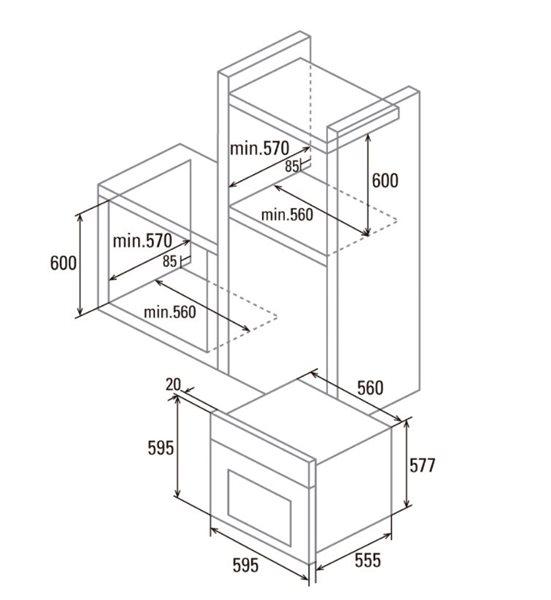 • Largura do compartimento de instalação: 42 cm