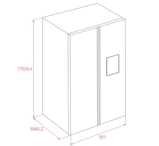 • 1769,4 mm altura + 911 mm largura + 666,2 mm profundidade