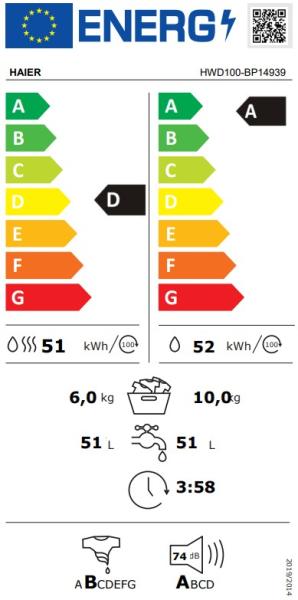 Modelo: HWD100BP14939IB Capacidade: 10 Kg Classe energética: D Peso (Kg): 81