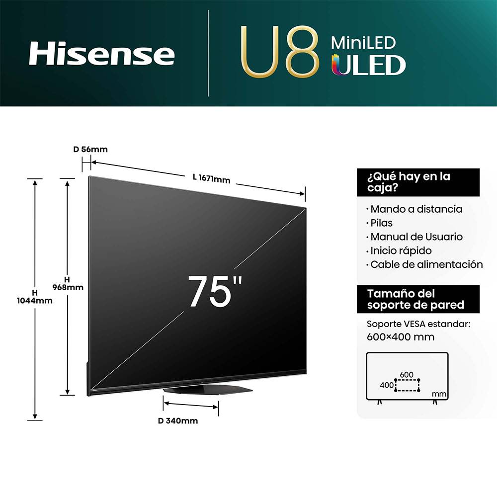 Compatível com suporte VESA Wall Mount: 600x400 mm