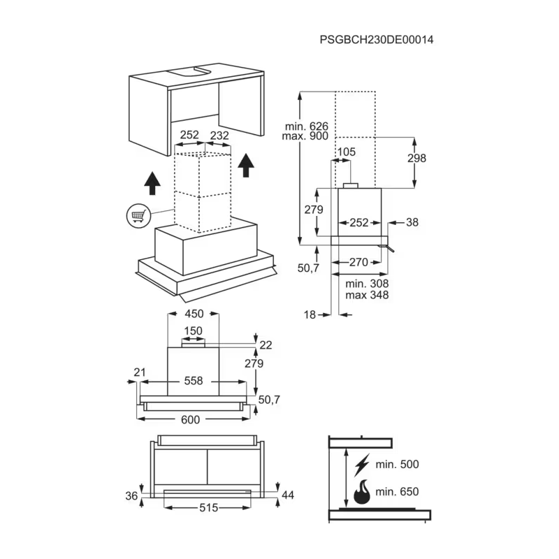 • Cap. de extração, nível máx/mín: 445 m3/h / 260 m3/h m³/h