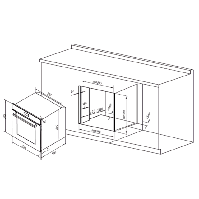 • Ventilador de resfriamento: Sistema de ventilação de ar para obter resfriamento rápido. Minimiza a condensação e o excesso de temperatura entre o forno e a placa. Esqueça as longas esperas depois de cozinhar para limpar o forno ou guardar os utensílios de cozinha no interior