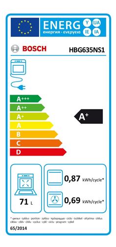 Modelo: HB-G635NS-1 Capacidade: 71 L Classe energética: A+ Peso (Kg): 36