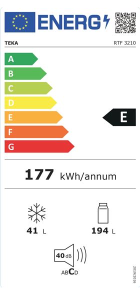 Modelo: RTF 3210 WH Capacidade: 235 L Classe energética: E Peso (Kg): 41,2