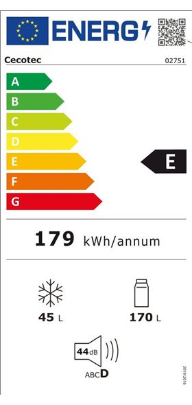 Modelo: ORIGIN215 Capacidade: 215 L Classe energética: E
