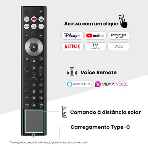 Aproveite o poder da luz ambiente com o Comando à distância Solar, da Hisense - um dispositivo concebido para se manter carregado através da luz natural e de um cabo USB-C. Este design inovador defende a sustentabilidade ao reduzir os resíduos eletrónicos, enquanto o seu funcionamento energeticamente eficiente mantém os custos baixos. Melhore a sua experiência televisiva e tenha um impacto ambiental positivo, tudo sem comprometer a comodidade.