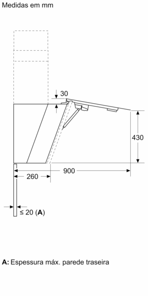 • Distância mínima até à placa elétrica: 450 mm