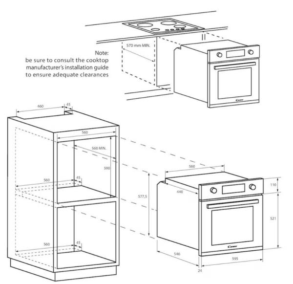• Abertura necessária (L × A × P): 585 × 560 × 560 mm
